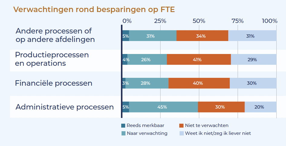 - Organisaties streven bij de inzet van AI naar efficiencywinsten in FTE van 20-50%