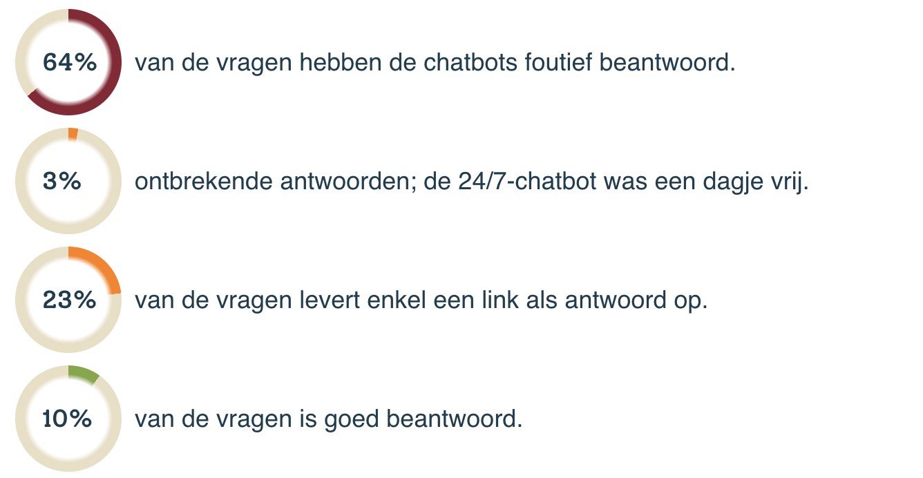 Chatbots op gemeentewebsites zijn niet alleen over de gehele linie digitaal ontoegankelijk, slechts 10% van de vragen wordt zonder meer goed beantwoord. Bijna twee derde van de vragen hebben de chatbots foutief beantwoord. Dat blijkt uit het tweede deel van het onderzoek van Wiep Hamstra en Jules Ernst onder 39 chatbots.