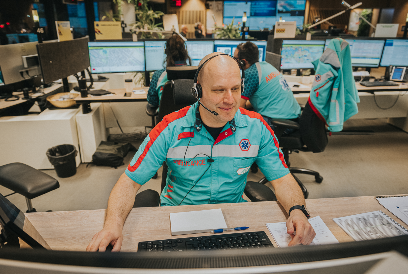 Thomas Van Autreve is hoofd meldkamer Ambulancezorg voor de Veiligheidsregio Rotterdam-Rijnmond. Hij geeft leiding aan een team van circa 60 centralisten met verschillende specialisaties. Van Autreve heeft eerder gewerkt als ambulanceverpleegkundige. “We sturen de eenheden aan en kunnen de traumaheli’s alias ‘lifeliners’ oproepen. In 2025 hebben we ruim 185.000 meldingen verwerkt voor onze eigen regio.”